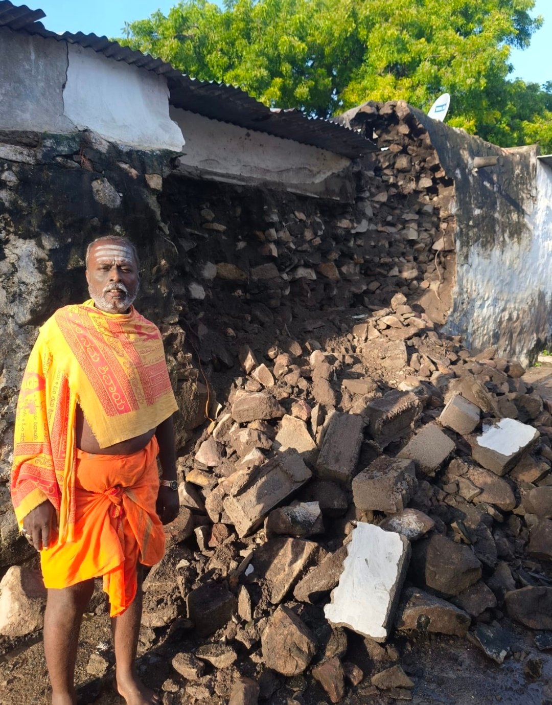ತಡ ರಾತ್ರಿ ಸುರಿದ ಭಾರಿ ಮಳೆಯಿಂದ ಯಾವುದೇ ಅನಾಹುತ ಸಂಭವಿಸಿದೆ ಎಂದು ತಿಳಿದುಬಂದಿದೆ ಅಲ್ಲದೆ ಇವರ ಮನೆಯು ಹಿಂಬಾಗದ ಸಂಪೂರ್ಣ ಗೊಡೆ ಬಿದ್ದಿದ್ದು ಇವರಿಗೆ ಸೂಕ್ತ ಪರಿಹಾರ ನೀಡಬೇಕೆಂದು ಸಂಬಂಧ ಪಟ್ಟ ಸ್ಥಳೀಯ ಹಾಗೂ ಮೇಲಾಧಿಕಾರಿ ಗಳಿಗೆ ಸೂಕ್ತ ಪರಿಹಾರ ನೀಡಬೇಕು