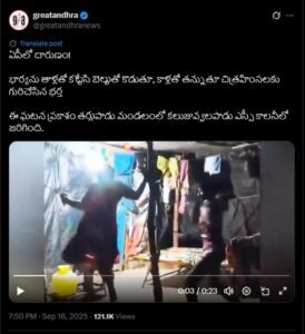 ಹೌದು, ಆಂಧ್ರಪ್ರದೇಶದ ಪ್ರಕಾಶಂ ಜಿಲ್ಲೆಯ ತರ್ಲುಪಾಡು ಮಂಡಲದ ಕಲುಜುವ್ವಲಪಾಡುವಿನಲ್ಲಿ ಬೆಚ್ಚಿ ಬೀಳಿಸುವ ಘಟನೆಯೊಂದು ನಡೆದಿದೆ. ಸ್ಥಳೀಯ ಎಸ್ಸಿ ಕಾಲೋನಿಯಲ್ಲಿ ವಾಸಿಸುವ ಗುರುನಾಥಮ್ ಎಂಬುವನು ತನ್ನ ಹೆಂಡತಿಯನ್ನು ಕ್ರೂರವಾಗಿ ಹೊಡೆದಿದ್ದಾನೆ. ಮನೆಯಲ್ಲಿ ಎರಡು ತೊಲೆಗಳಿಗೆ ಕಟ್ಟಿ ಚಿತ್ರಹಿಂಸೆ ನೀಡಿದ್ದಾನೆ. ಅವಳನ್ನು ಬೆಲ್ಟ್ನಿಂದ ಹೊಡೆದು,ಮತ್ತು ತನ್ನ ಕಾಲುಗಳಿಂದ ಒದ್ದು ಹಲ್ಲೆ ಮಾಡಿದ್ದಾನೆ. ಈ ಕುರಿತು ವಿಡಿಯೋ ಒಂದು ಸಾಮಾಜಿಕ ಜಾಲತಾಣದಲ್ಲಿ ಭಾರೀ ವೈರಲ್ ಆಗಿದೆ.