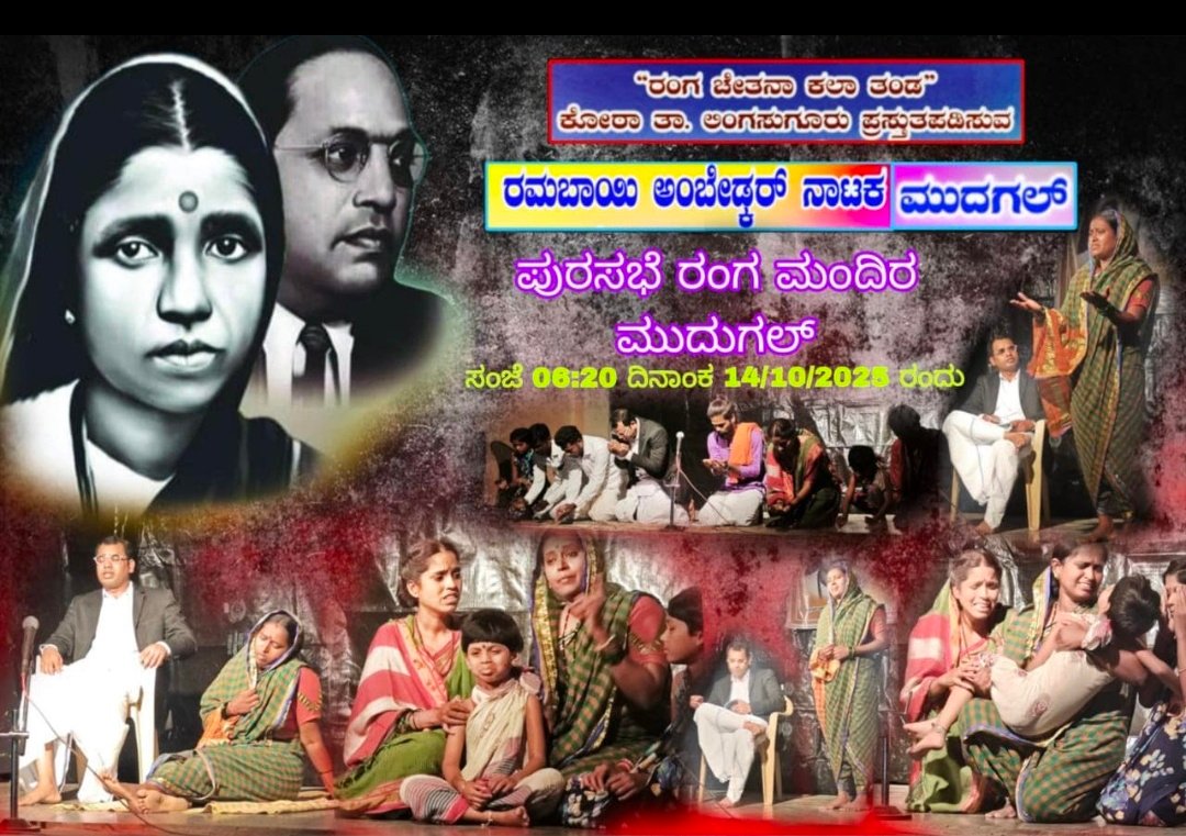 ಇಂದು ಸಂಜೆ ರಂಗ ಚೇತನಾ ಕಲಾ ತಂಡ ಕೋಠಾ ತಂಡದಿಂದ ‘ರಮಾಭಾಯಿ ಅಂಬೇಡ್ಕರ್ ನಾಟಕ ಪ್ರದರ್ಶನ....