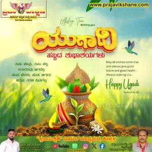 ಯುಗಾದಿ ನಮ್ಮ ಹೊಸ ಸಂವತ್ಸರದ ಹಬ್ಬ. ಈ ಹಬ್ಬದ ಮೂಲಕ ನಮ್ಮ ಸಂಸ್ಕೃತಿ, ಪರಂಪರೆ ಉಳಿಸೋಣ. ಹೊಸ ಬಟ್ಟೆ, ಬೇವು-ಬೆಲ್ಲದೊಂದಿಗೆ ಸಂಭ್ರಮದಿಂದ ಯುಗಾದಿಯನ್ನು ಆಚರಿಸೋಣ. ಈ ಯುಗಾದಿ ನಮಗೆ ಹೊಸತನವನ್ನು ತರಲಿ. ಯುಗಾದಿಯ ದಿನ ಸಿಹಿಯನ್ನು ಬಯಸುವ ಜೊತೆಗೆ ಪ್ರಕೃತಿಗೂ ನಾವು ಒಳಿತನ್ನೇ ಮಾಡುವ ಪಣ ತೊಡೋಣ. ವನಸಿರಿಯ ಹಸಿರನ್ನು ಹೆಚ್ಚಿಸುವ, ಪ್ರೀತಿಯ, ಬೆಲ್ಲದ ಯುಗಾದಿ ಮರಳಿ ಬರಲಿ.