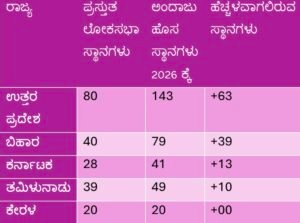 *ಕ್ಷೇತ್ರ ಮರುವಿಂಗಡಣೆ 2026 : ದಕ್ಷಿಣ vs ಉತ್ತರ ಭಾರತದ ರಾಜ್ಯಗಳ ಸ್ಥಾನಗಳ ತುಲನೆ*
