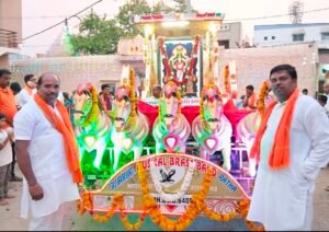 ಮುದಗಲ್ಲ ಪ್ರಮುಖ ರಸ್ತೆ ಮುಖಾಂತರ ಸಕಲ ವಾಧ್ಯ ವೈಭವ, ಡಿಜೆ ಸಾಂಗ್ ಗೆ ಯುವಕರು ಡ್ಯಾನ್ಸ್ ಮಾಡುವುದು ಗಮನ ಸೆಳೆಯಿತು ಸಾರೋಟಿನ ಮೆರವಣಿಗೆ ನಡೆಯಿತು