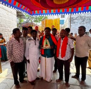 ದೇವಸ್ಥಾನದ ಆವರಣದಲ್ಲಿ ಗಂಗೆ ಪೂಜೆ ನಡೆಸಿ ಕನ್ನಿಕಾ ಪರಮೇಶ್ವರಿ ದೇವಿಯ ಭಾವಚಿತ್ರದ ಮೆರವಣಿಗೆ